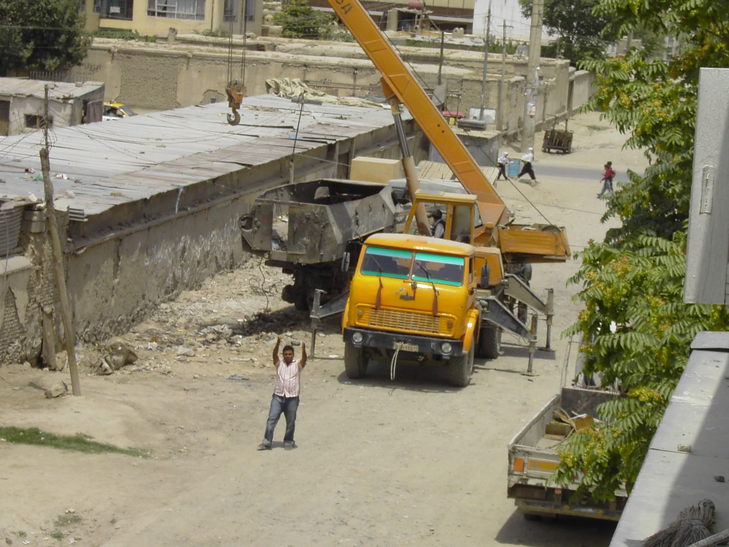 Hamid og driveren, Hashmatulllah, kørte mig ad støvede veje gennem Kabuls mylder og kaos af biler, folk på indiske cykler, gule taxier og gående alle vegne. Flotte mænd i fantastiske dragter og hovedbeklædninger, fattige i laser og snavs, kvinder i de blå burkaer, hvor man end ikke kan se øjnene, men også kvinder blot med tørklæde. Ansigtstrækkene giver mindelser om alt fra Rusland over Indien til Mongoliet. Et kludetæppe af afstamninger. Husene (compounden) vender ryggen til gaderne omgærdet af en høj kraftig mur med jerndør - som oftest med bevæbnede vagter. ”Vores gade” i Qula-e Fathullah-området, Street no. 8, viste sig også at være en grusvej, hvor alle smider deres affald. Hver morgen kommeren hyrde forbi med sine geder og endevender lossepladsens seneste skraldeposer og æder alt, der er muligt (må give noget godt kød!). Desuden er gaden udsmykket med en udbrændt, sikkert russisk, kampvogn. I bedste fald malerisk. I værste fald trøstesløst.